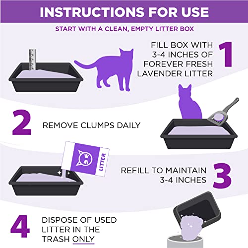 - PET-FRIENDLY WITH ESSENTIAL OILS. Essential oils are the inspiration behind ARM & HAMMER Forever Fresh Lavender Clumping Cat Litter. This lavender-scented clumping cat litter delivers long-lasting freshness that’s pet-friendly yet tough on litter box urine and feces smells, delivering long-lasting odor control. Avoid messy dust clouds and tracks of litter from ARM & HAMMER Forever Fresh Lavender Clumping Cat Litter, thanks to its 99% dust-free formulation. This cat litter forms rock-solid clumps so you can remove the source of odors easily to help maintain litter box freshness. The hard clumps and easy scooping also make this cat litter ideal for multi-cat households.