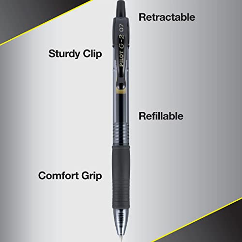 Details: From taking notes to journaling or drawing, G2 Gel Roller pens keep the ink and your ideas flowing. These long-lasting pens come in many color options and 4 tip sizes, so it’s easy to find one that caters to your writing needs and personal style. The quick-drying ink prevents smears and smudges, ensuring your work is neat and clear. Create masterpieces of writing or art with these thanks smooth-flowing gel pens that deliver vivid and clear lines. Perfect for your everyday writing needs, the 0.7 mm fine pen point size strikes a balance between fine and bold lines. Archival-safe and acid-free black ink is formulated to be long-lasting and fade-resistant, ensuring your documents last for a long time. The comfortable rubber grip offers ergonomic support, reducing hand fatigue and making lengthy writing projects a breeze. Pilot’s G2 line blends smooth writing with long-lasting ink, precision and comfort for an exceptional writing experience.