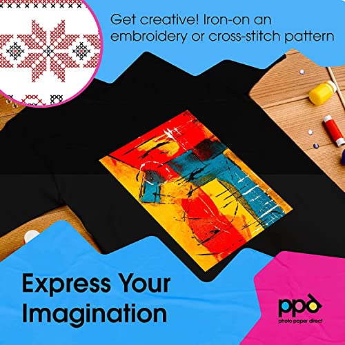- Pack of 10 Iron On T-Shirt Printing Paper in 8.5X11” for Dark and Black T-Shirts. Our advanced technology allows printing on various other textiles, such as pillow cases, aprons, or any other cotton/polycotton fabrics